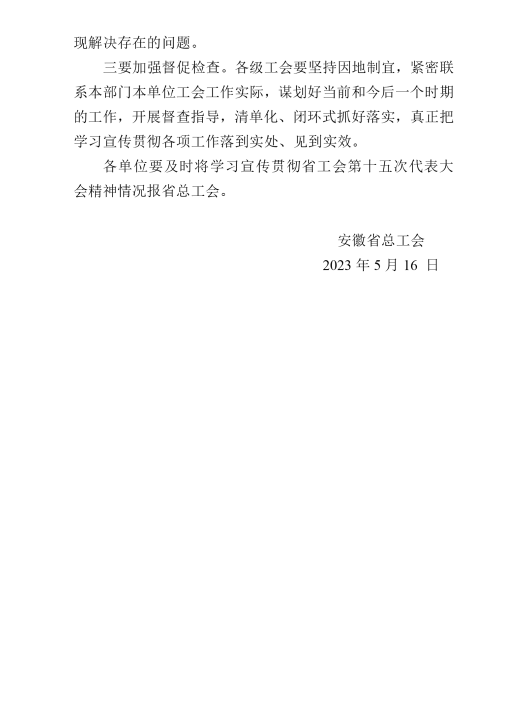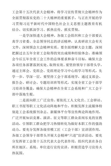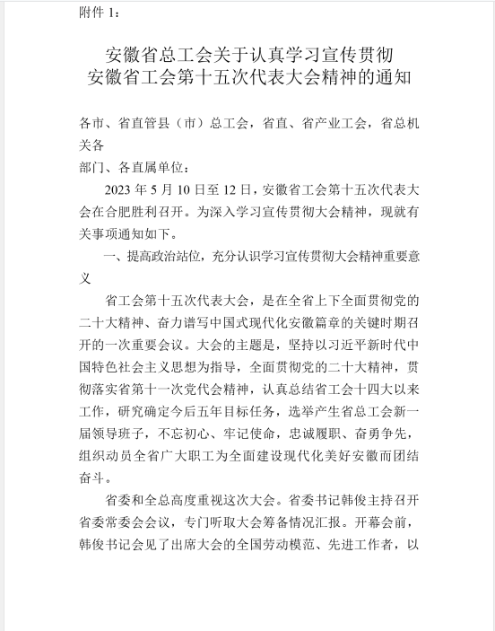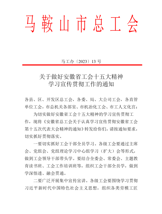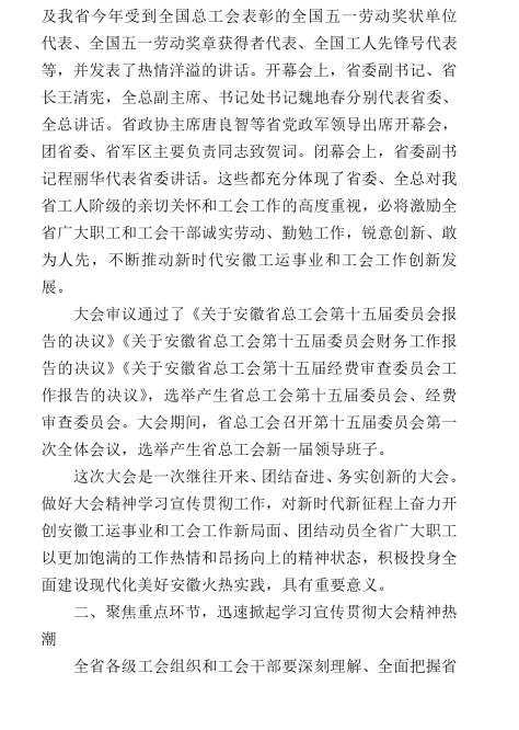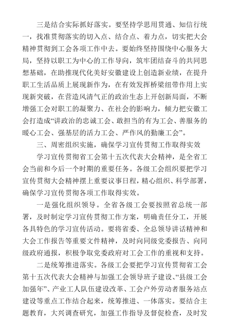 关于做好安徽省工会十五大精神学习宣传贯彻工作的通知